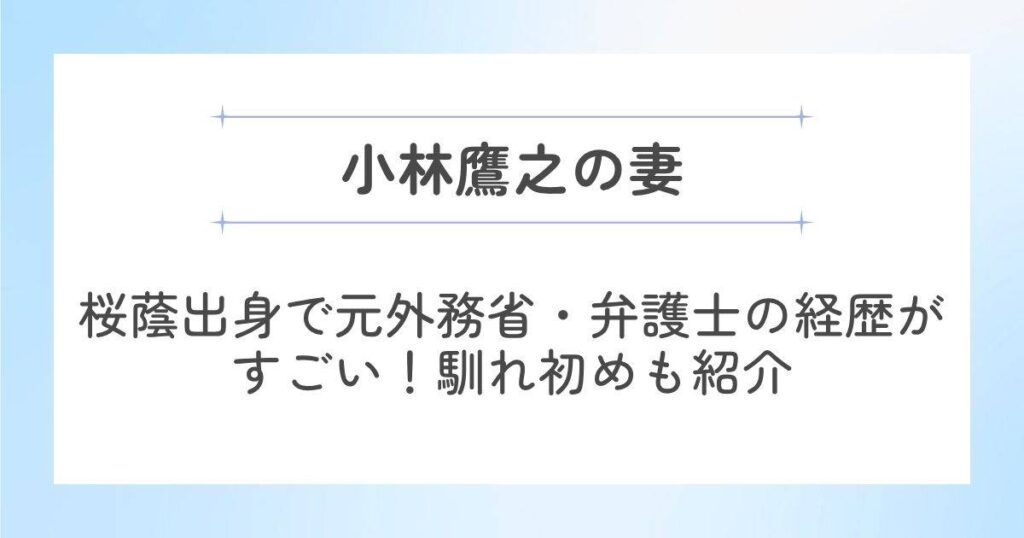 小林鷹之の妻は桜蔭出身で元外務省・弁護士の経歴がすごい!馴れ初めも紹介