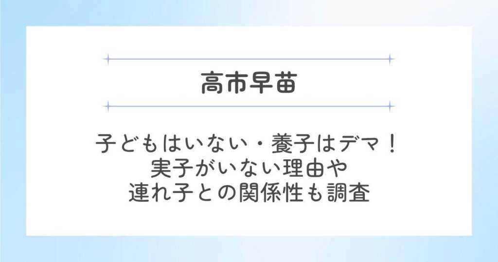 高市早苗さんに子どもはいないという噂が出回る一方で養子がいるという情報も出回っています。 実際のところ高市早苗さんには実子もいないし、養子もおらず正しくは連れ子なんですね。 連れ子がいるとなると連れ子の人数、年齢も知っておきたいので調査し... -
